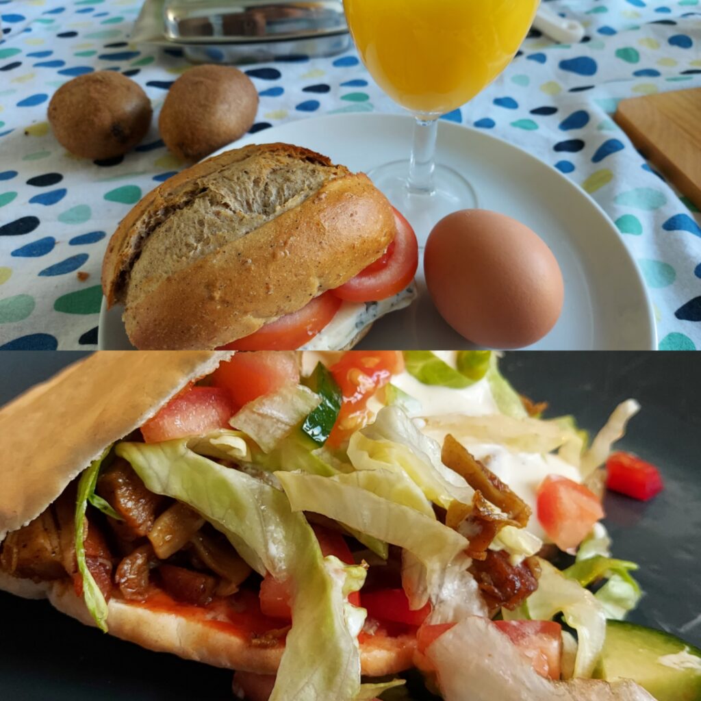 Broodje vega shoarma met gevulde sla en zelfgemaakte knoflooksaus